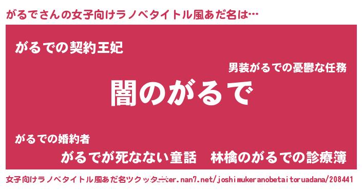 | 男性向けラノベタイトル風あだ名 | 『Re:がるでから始める異世界生活』 |