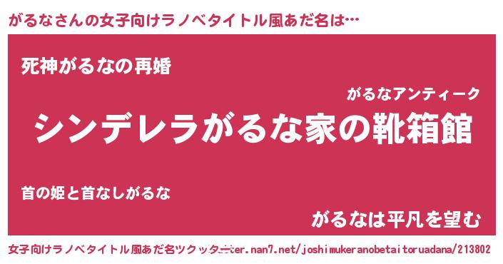 | 男性向けラノベタイトル風あだ名 | 『緋弾のガルナ』『魔法科高校のがるな』 |