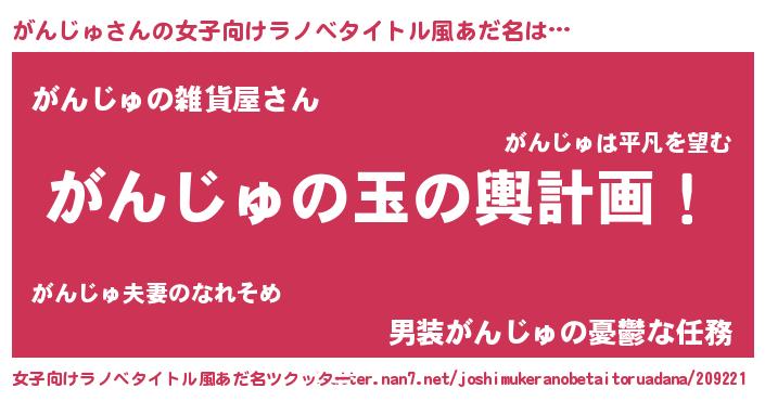 | 男性向けラノベタイトル風あだ名 | 『転生したらがんじゅだった件』 |
