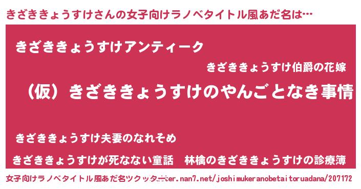 男性向けラノベタイトル風あだ名 | 『きざききょうすけの憂鬱』 |