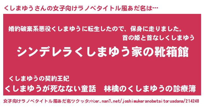 | 男性向けラノベタイトル風あだ名 | 『緋弾のクシマユウ』 |