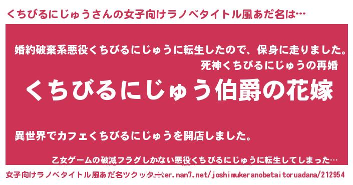 | ファンタジー風あだ名 | 『エターナルクチビルニジュウー』 |
