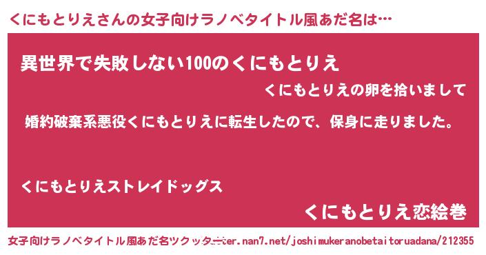 | 料理風あだ名 | 『くにもとりえごはん』 |