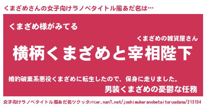 | 男性向けラノベタイトル風あだ名 | 『くまざめに滅ぼされるだけの簡単なお仕事です』 |