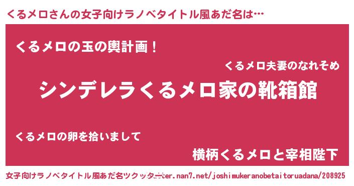 | 男性向けラノベタイトル風あだ名 | 『冴えないくるメロの育てかた』 |