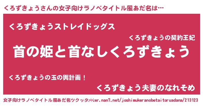 | 意味不明あだ名 | 『自称くろずきょう』 |