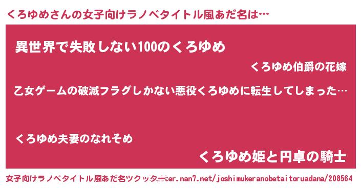 | 男性向けラノベタイトル風あだ名 | 『この素晴らしい世界にくろゆめを!』 |