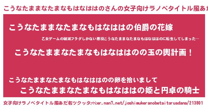 | 胡散臭い通販商品みたいなあだ名 | 『運命の人と巡り会える高級そうな皿…その名も「こうなたままなたまなもはなははの」』 |