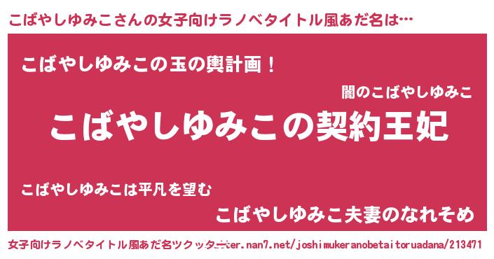 | 男性向けラノベタイトル風あだ名 | 『誰もが恐れるあのこばやしゆみこが、ぼくの専属メイドになるようです。』 |