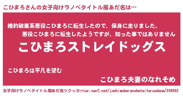 | 男性向けラノベタイトル風あだ名 | 『Re:こひまろから始める異世界生活』 |