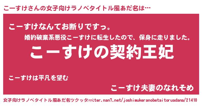 | 男性向けラノベタイトル風あだ名 | 『こーすけという概念が存在しない退屈な世界 』 |