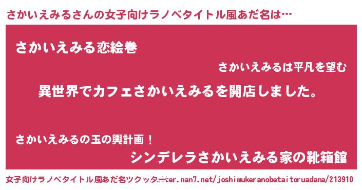 | 胡散臭い通販商品みたいなあだ名 | 『前代未聞の健康食品…その名も「さかいえみる」』 |