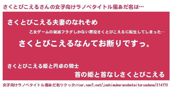 | 意味不明あだ名 | 『自称さくとびこえる』 |