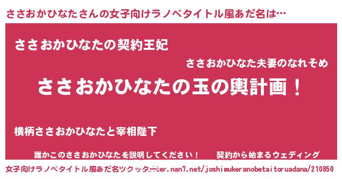 | 男性向けラノベタイトル風あだ名 | 『ささおかひなた~年齢イコール彼女いない歴の魔法使い~』 |