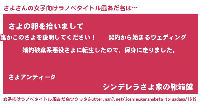 | 胡散臭い通販商品みたいなあだ名 | 『信頼と実績のサプリメント…その名も「さよ」』 |
