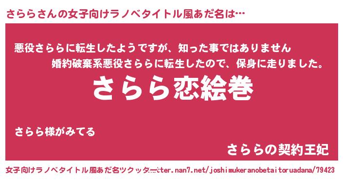| 男性向けラノベタイトル風あだ名 | 『ノーゲーム・ノーサララ』 |