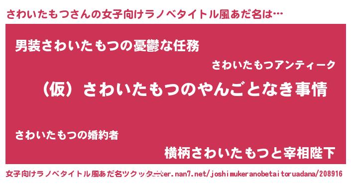 | 胡散臭い通販商品みたいなあだ名 | 『必ず成功するブレスレット…その名も「さわいたもつ」』 |
