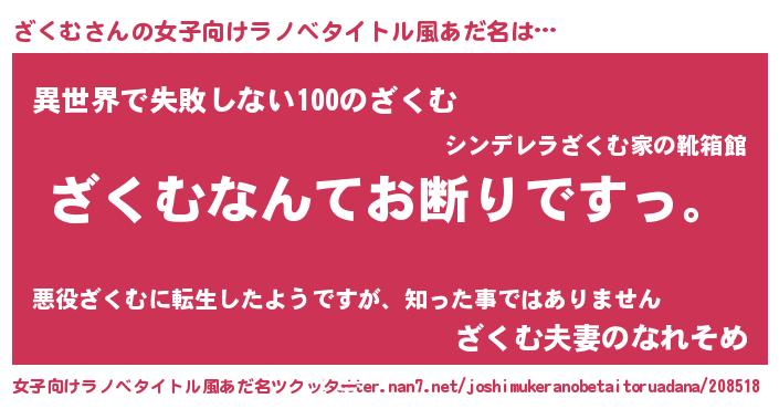 | ヘコむあだ名 | 『ざくむ(苦笑)』『ざくっちょ』 |