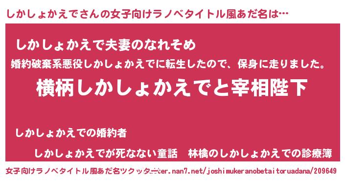 | 男性向けラノベタイトル風あだ名 | 『しかしょかえでに滅ぼされるだけの簡単なお仕事です』 |