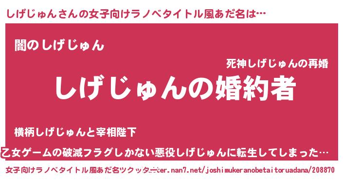 | 胡散臭い通販商品みたいなあだ名 | 『運命の人と巡り会える高級そうな壺…その名も「しげじゅん」』 |