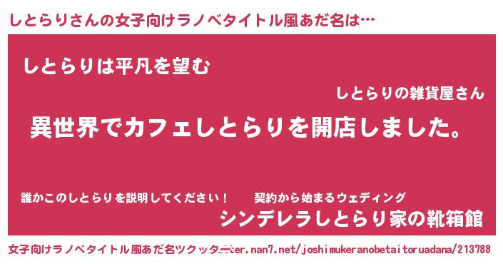 | 男性向けラノベタイトル風あだ名 | 『誰もが恐れるあのしとらりが、ぼくの専属メイドになるようです。』 |