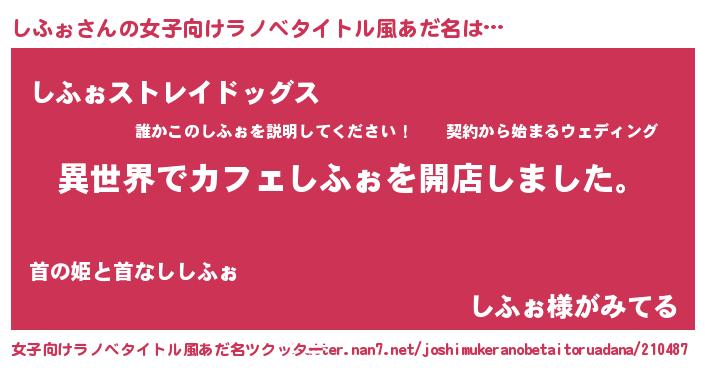 | 男性向けラノベタイトル風あだ名 | 『誰もが恐れるあのしふぉが、ぼくの専属メイドになるようです。』 |