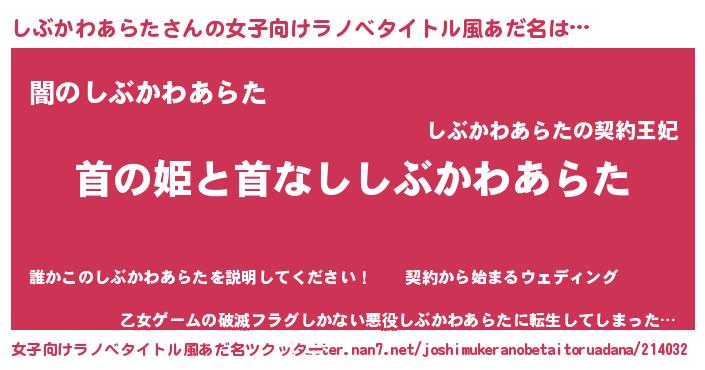 | 意味不明あだ名 | 『自称しぶかわあらた』 |