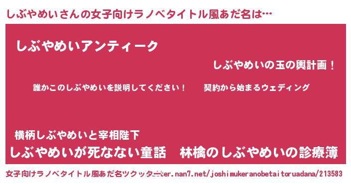 | 胡散臭い通販商品みたいなあだ名 | 『億万長者になれる霊験あらたかなお札…その名も「しぶやめい」』 |