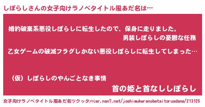 | 意味不明あだ名 | 『住所不定無職しぽらし(10歳)』 |
