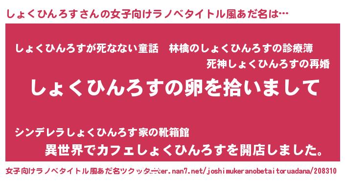 | ポケモン風あだ名 | 『ヒショクヒンロス』『シーョイ』 |