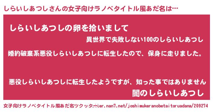 | 胡散臭い通販商品みたいなあだ名 | 『信頼と実績のネックレス…その名も「しらいしあつし」』 |