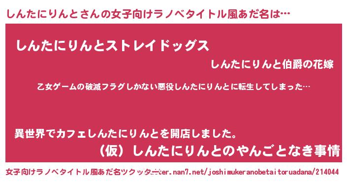 | 意味不明あだ名 | 『住所不定無職しんたにりんと(14歳)』 |