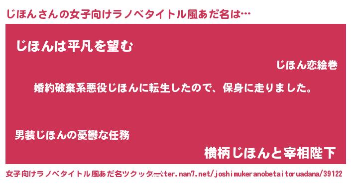 | ヘコむあだ名 | 『じほ太郎』『じほん(笑)』『牛乳』 |