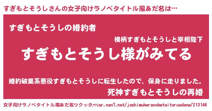 | 男性向けラノベタイトル風あだ名 | 『すぎもとそうしの嫁は女の子じゃないと思った?』 |