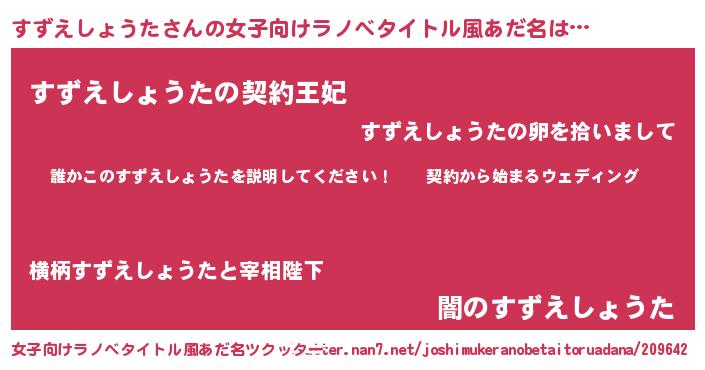 | 恥ずかしいあだ名 | 『プリティーすずえしょうた』『すずちん』 |
