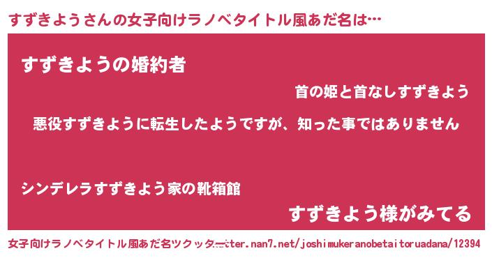 | 男性向けラノベタイトル風あだ名 | 『この素晴らしい世界にすずきようを!』 |