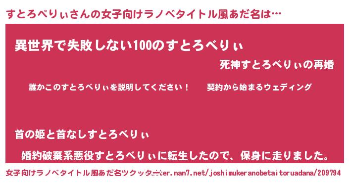| 胡散臭い通販商品みたいなあだ名 | 『億万長者になれるブレスレット…その名も「すとろべりぃ」』 |