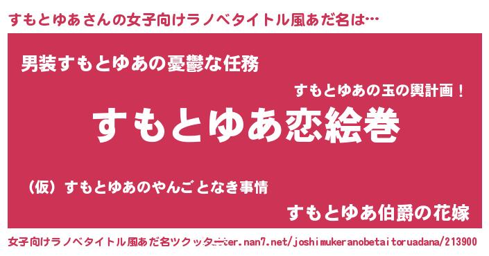 | 男性向けラノベタイトル風あだ名 | 『おまえをオタクにしてやるから、俺をすもとゆあにしてくれ! 』 |