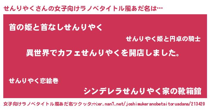 | 意味不明あだ名 | 『永久保存せんりやく』『自称せんりやく』 |