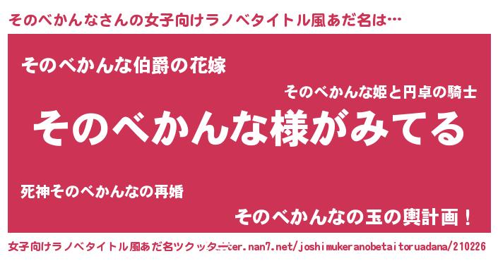 | 男性向けラノベタイトル風あだ名 | 『そのべかんなの嫁は女の子じゃないと思った?』 |