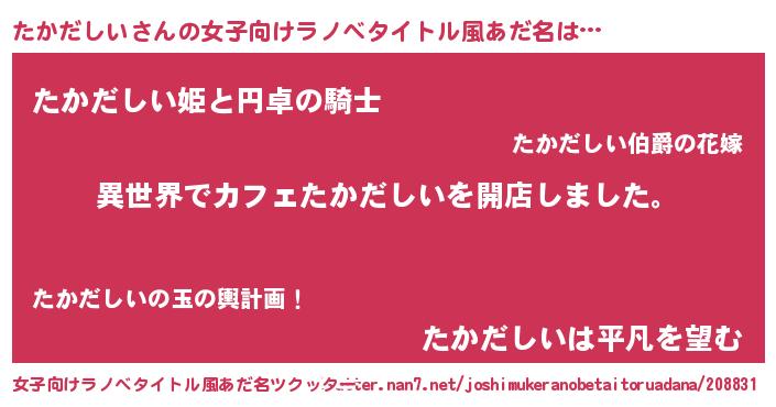 | 胡散臭い通販商品みたいなあだ名 | 『前代未聞の健康食品…その名も「たかだしい」』 |