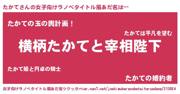| 男性向けラノベタイトル風あだ名 | 『たかてに滅ぼされるだけの簡単なお仕事です』 |