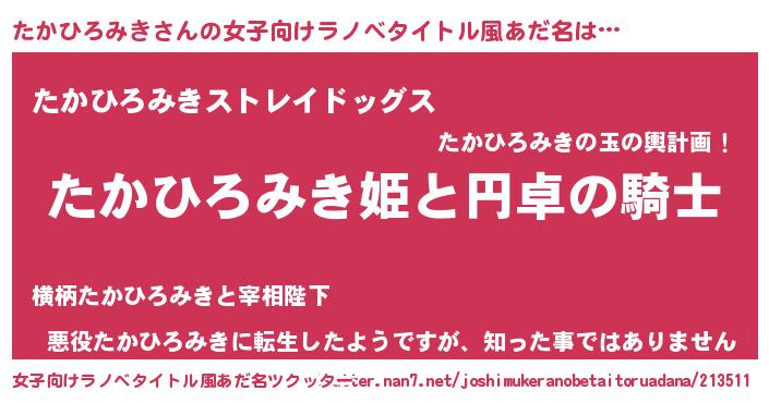 | 男性向けラノベタイトル風あだ名 | 『たかひろみきの憂鬱』 |