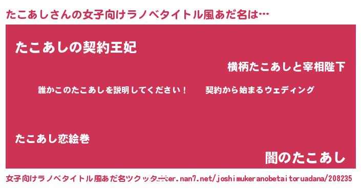 | ヘコむあだ名 | 『たこふぇ~』『たこあし(笑)』 |