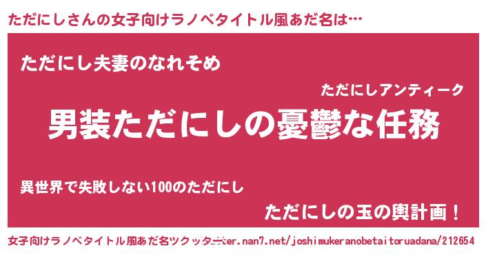 | 男性向けラノベタイトル風あだ名 | 『うちのただにしが世界を掌握している!』 |