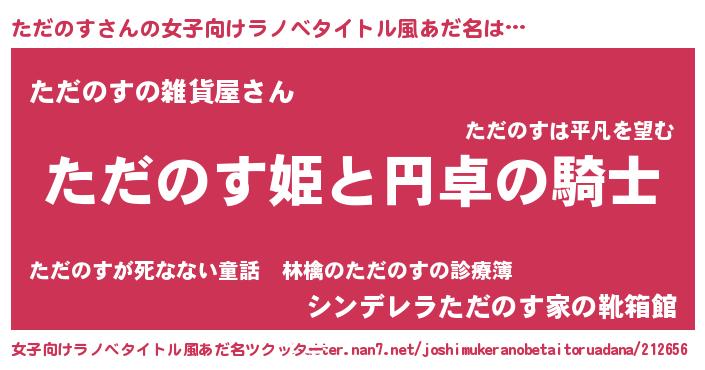 | 男性向けラノベタイトル風あだ名 | 『タダノスアートオンライン』 |