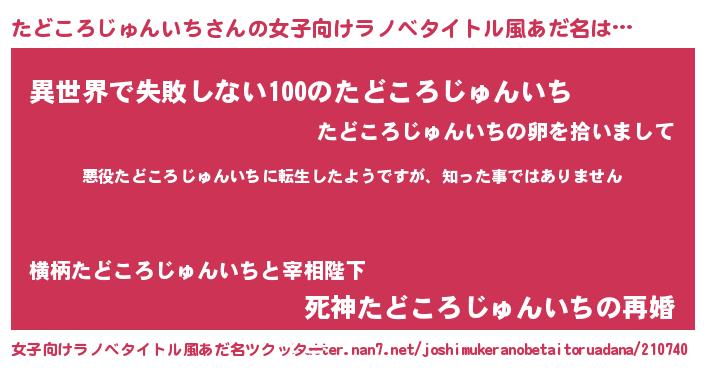 | 可愛いあだ名 | 『ぽよたど』『たどころじゅんいちママ』 |