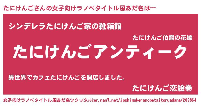 | 意味不明あだ名 | 『自称たにけんご』『永久保存たにけんご』 |