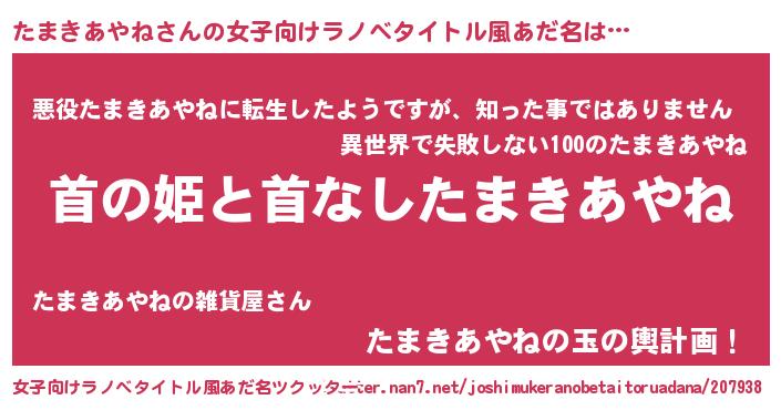 | 男性向けラノベタイトル風あだ名 | 『はたらくたまきあやねさま!』 |
