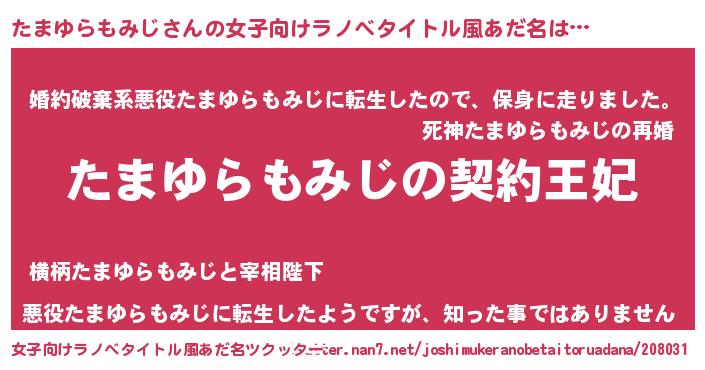 | ヘコむあだ名 | 『たまゆらもみじ(小並感)』『たま太郎』 |